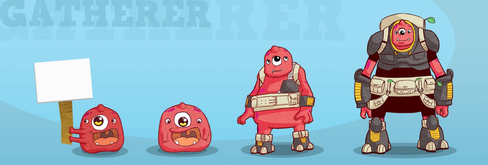 I tried a funny look without losing the "running away from an energy crisis" aspects. Lilo and Stitch and some modern cartoons were strong references for the designs.